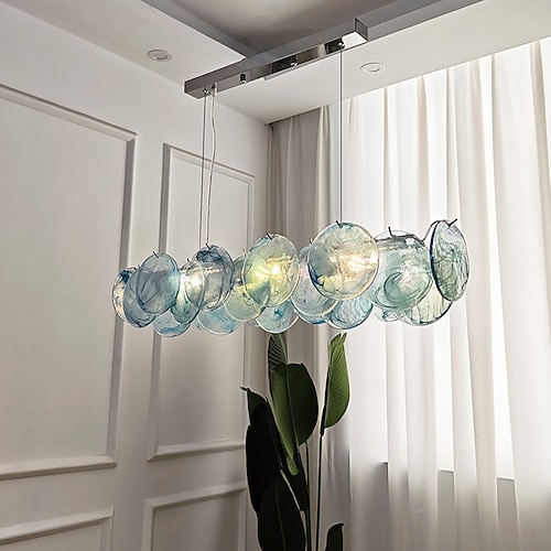 lampadario a 6 livelli in vetro a forma di nuvola di colore chiaro, fatto a mano artigianalmente
