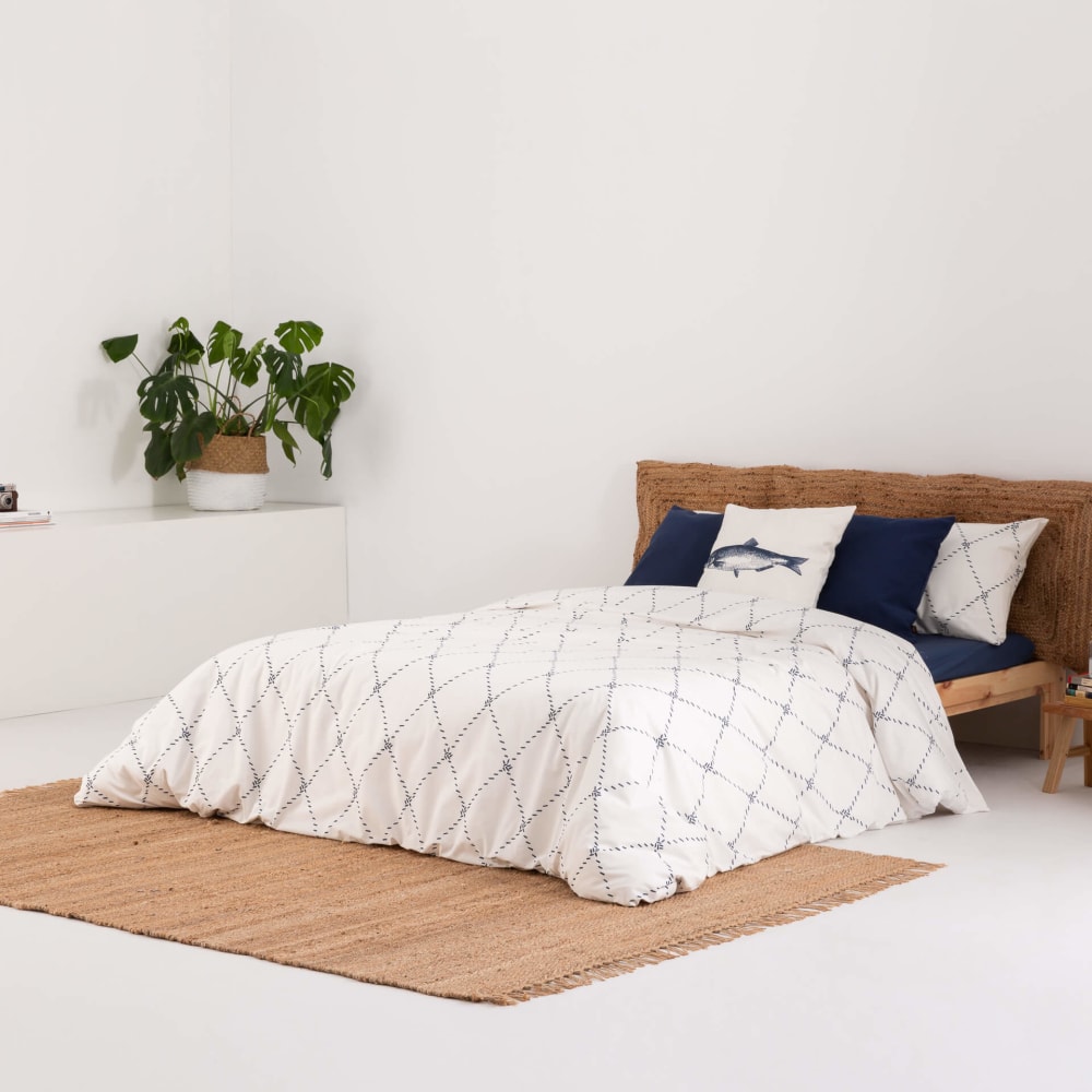 Terracota Housse de couette en popeline de coton 300 fils bleu 220x220 cm