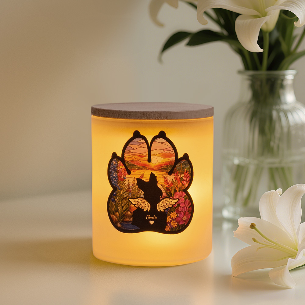 Personalizzato Dog Silhouette LED Candle Lamp Jar con nome e coperchio in legno Home Decor Dog Loss Memorial Gift for Dog Lover