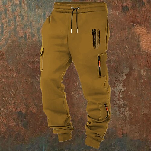 Per uomo Pantaloni sportivi Pantaloni da tuta Joggers Pantaloni Tasca Elastico in vita Coulisse Bandiera Americana Comodità Sport all'Aperto Quotidiano Moda Casual Nero Giallo Micro-elastico