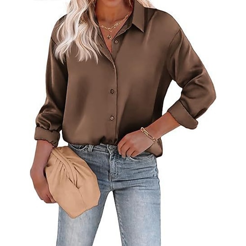 Per donna Camicia Elegant Raso/Satin Blusa Semplice Elegante Manica Lunga Colletto a Camicia Top Regolari Quotidiano Ferie Uscire Bottoni Rosa Viola Arancione Marrone Cachi Estate Primavera Autunno
