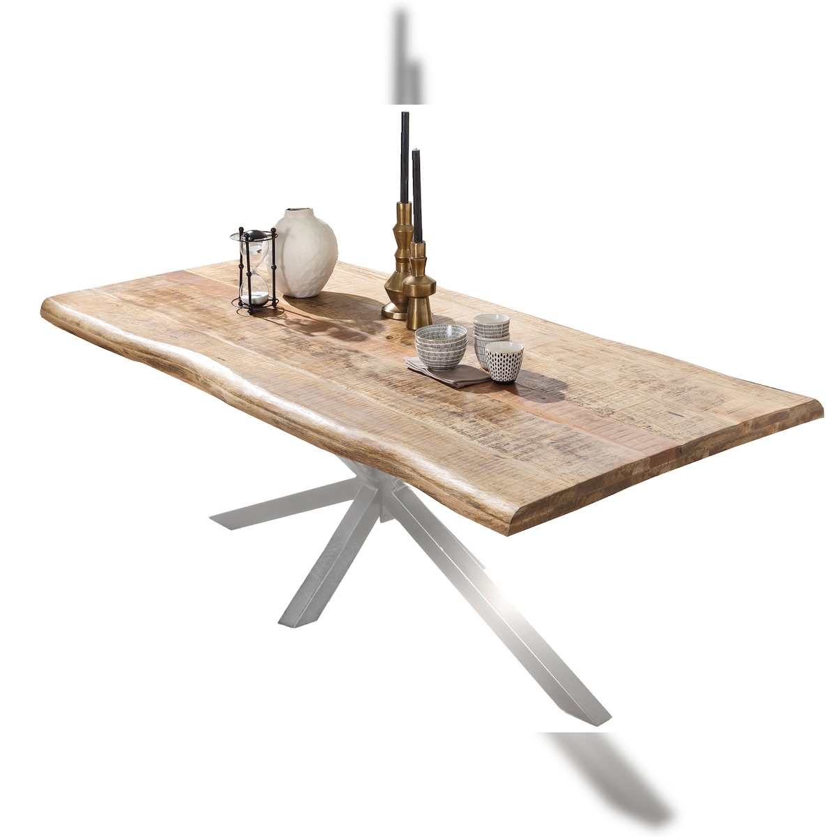 SIT Möbel Baumkante-Esstisch | 220x100 cm | 50 mm Platte Mango natur | Metallgestell silbern | B 220 x T 100 x H 77 cm | 15253-40 | Serie TABLES & CO