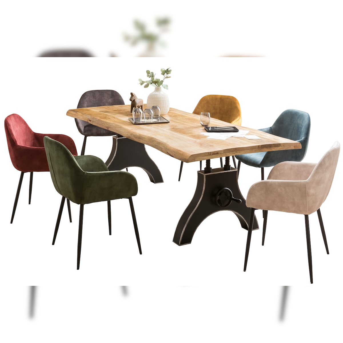 SIT Möbel Esstisch Baumkante | 220 x 100 x 78 cm | Platte 56 mm Akazie natur | X-Metallgestell antikschwarz | 15875-11 | Serie TABLES&CO