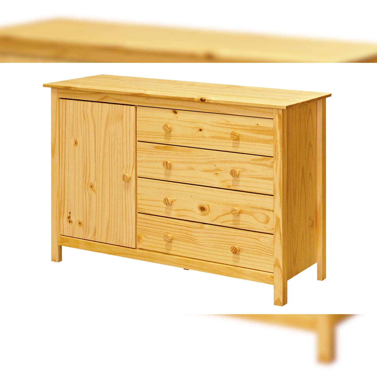 SIT Möbel Kommode | 1 Tür, 4 Schubladen | Kiefer massiv | Natur, lackiert | B 120 x T 40 x H 80 cm | 19001-10 | Serie KOMMODE