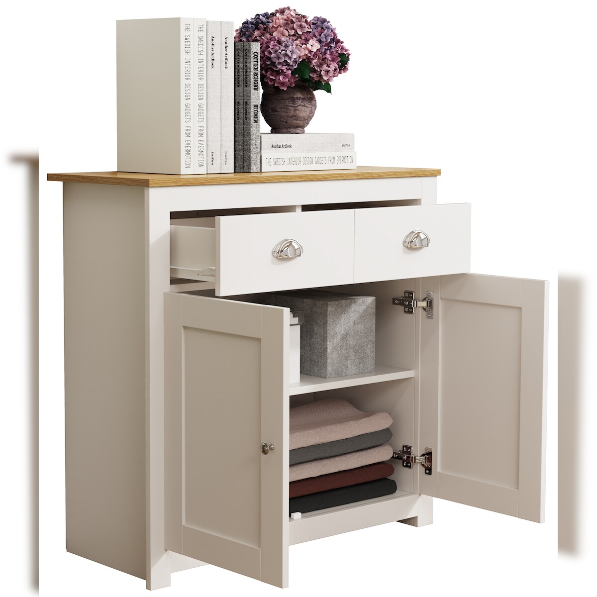 Kommode VASAGLE "VASAGLE Kommode 80 x 80 cm, Beige/Weiss", natur, weiß, B:80cm H:80cm T:40cm, MDF, Spanplatte, Stahl, Sideboards, Kommode natur, weiß B/H/T: 80cm x 80cm x 40cm