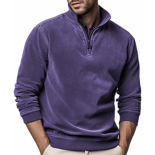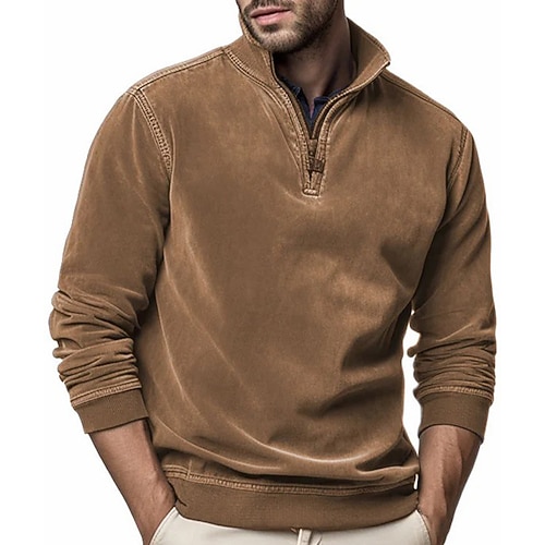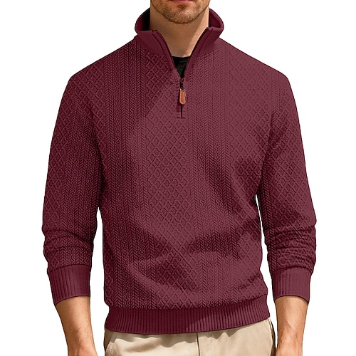 Per uomo Maglia Maglione Felpa con zip corta Rosso bordeaux Nero Verde militare Blu marino Blu Reale Colletto Mao Semplice Zip a un quarto Sport Outdoor Casuale Quotidiano Vintage Streetwear