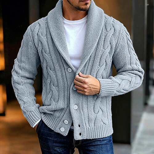 Per uomo Maglione a trecce Felpa Cardigan Treccia Maglia Top Regolari Lavorato a maglia Semplice Collo a scialle Moderno Contemporaneo Casual Casuale Ferie Abbigliamento Primavera Autunno Blu