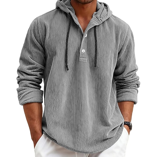 Per uomo Felpa con cappuccio Felpa Velluto a coste Maglione Bianco Blu marino Con cappuccio Liscio Tasche Ufficio Sportivo Informale Attivo Vintage Fantastico Primavera Autunno Abbigliamento Felpe