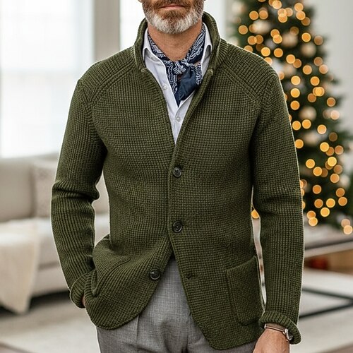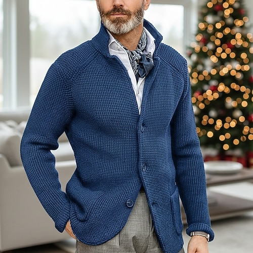 maglione da uomo cardigan giacca maglione blazer waffle lavorato a maglia colletto rialzato lavorato a maglia tinta unita manica lunga basic elegante outdoor abbigliamento quotidiano abbigliamento autunno inverno blu kaki s m l
