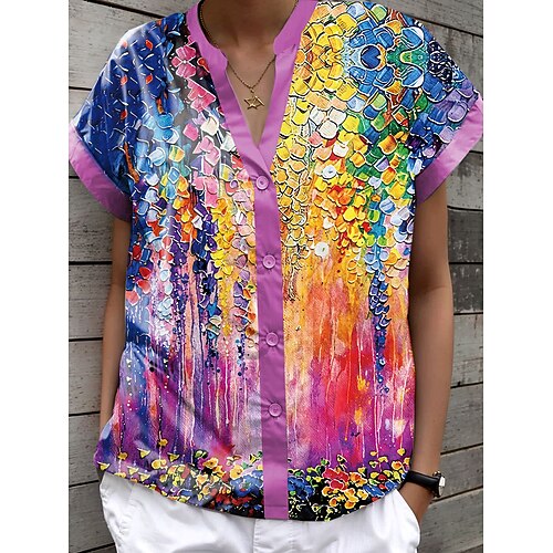Blusa da donna floreale elegante quotidiana alla moda con maniche corte colletto regolare maglie lavoro quotidiano vacanza bianco rosa blu verde estate