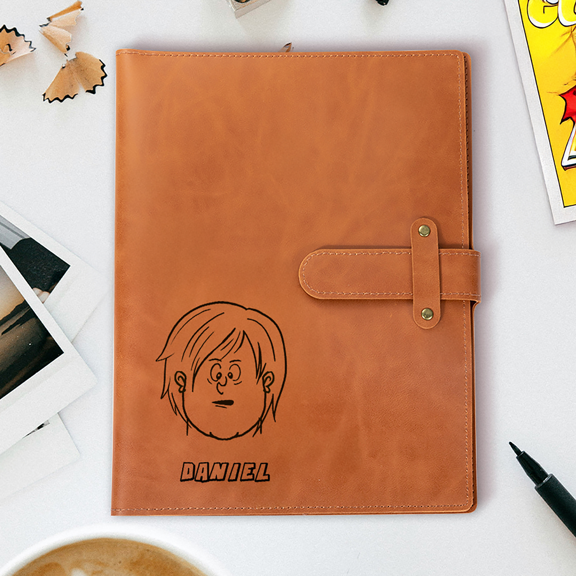 Henkilökohtainen Comic Style Character A5 PU Nahka Notebook kansi varastointi tasku ja nimi lahja opiskelijoille kollegoille kollegoille