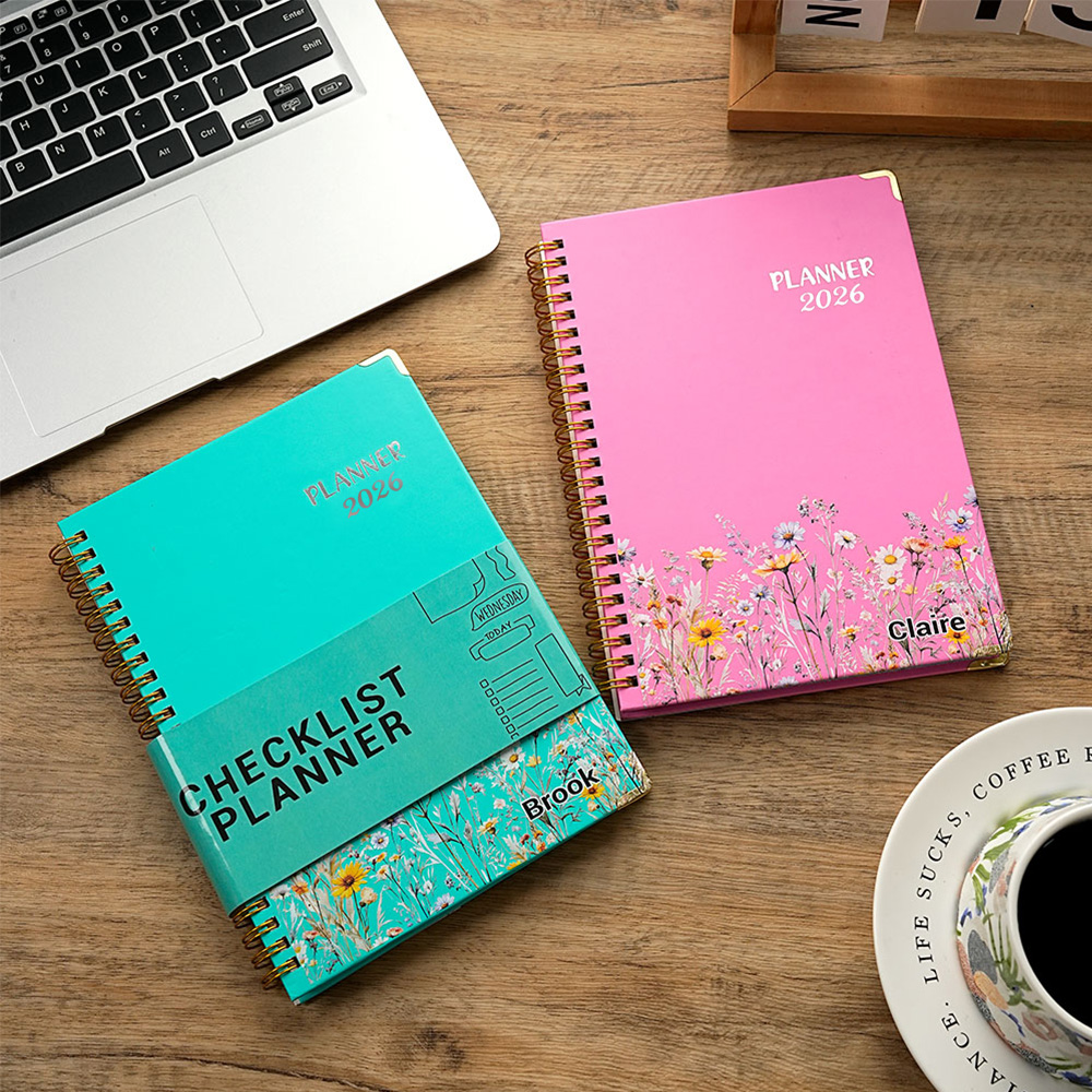 Personnalisé Multicolore Wildflower Name 2026 Planner Spiral A5 Notebook with Weekly Monthly Planner Pages Festival Birthday Gift for Friends Family
