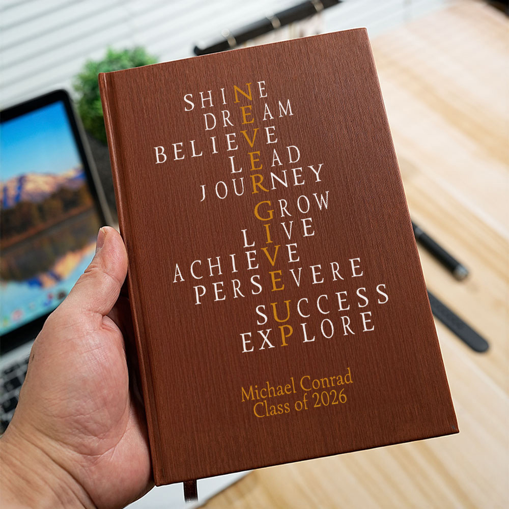 Personalisierte nie aufgeben motivierende Zitat A5 Journal Notebook mit Namen Graduierung Geschenk für Absolventen