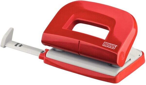 NOVUS Locher E 210, rot/grau, Stanzleistung: 10 Blatt, Metallunterteil und Kunststoffoberteil, mit Anschlagschiene