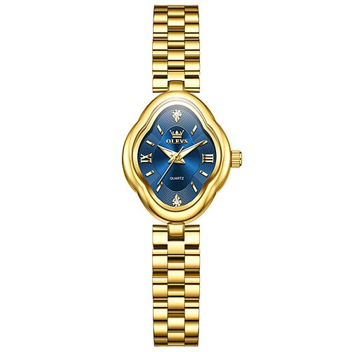 Orologi olevs da donna, elegante orologio al quarzo irregolare, bracciale in acciaio inossidabile dorato, orologio da polso analogico impermeabile con dettagli in diamante, orologio elegante di lusso