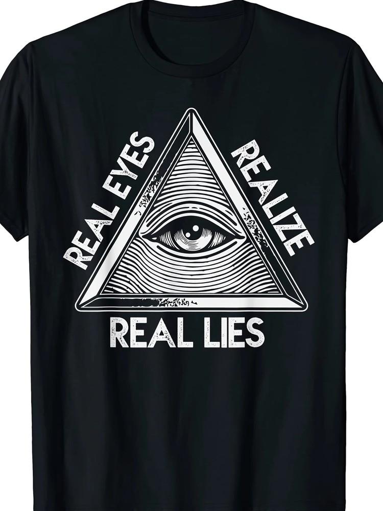 Men's Real Eyes Realize Real Lies Graphic Cotton T-Shirt - Black Casual Crew N Unisex T-Shirt cm