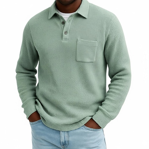 Per uomo Polo da Golf Polo a Maglia Waffle Casuale Affari Colletto Polo a Coste Manica Lunga Moda Essenziale Tinta unica Lavoro a maglia Autunno Inverno Tutte le stagioni Vestibilità regolare Vino