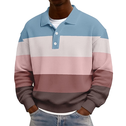 Per uomo Strisce orizzontali Magliette Polo a Nido d'Ape Polo da rugby Manica Lunga Magliette polo Bavero Abbigliamento Sportivo Casual Scuola Athleisure Abbigliamento quotidiano Stampa 3D Primavera