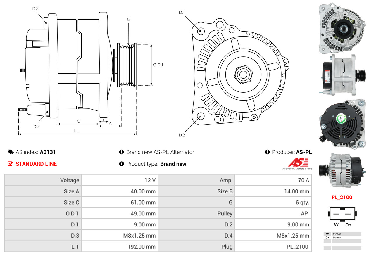 AS-PL Generator A0131 12V 70A für VW DAF FORD ROVER 028903027C 038903023H 050903017A