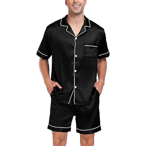 Per uomo Pigiami Set Pigiama Top e pantaloncini del pigiama 1 Set Semplice Moda Elegante Classico Quotidiano Casa Da letto Spandex Poliestere Comodità Morbido Traspirante Bavero Manica Corta Camicia