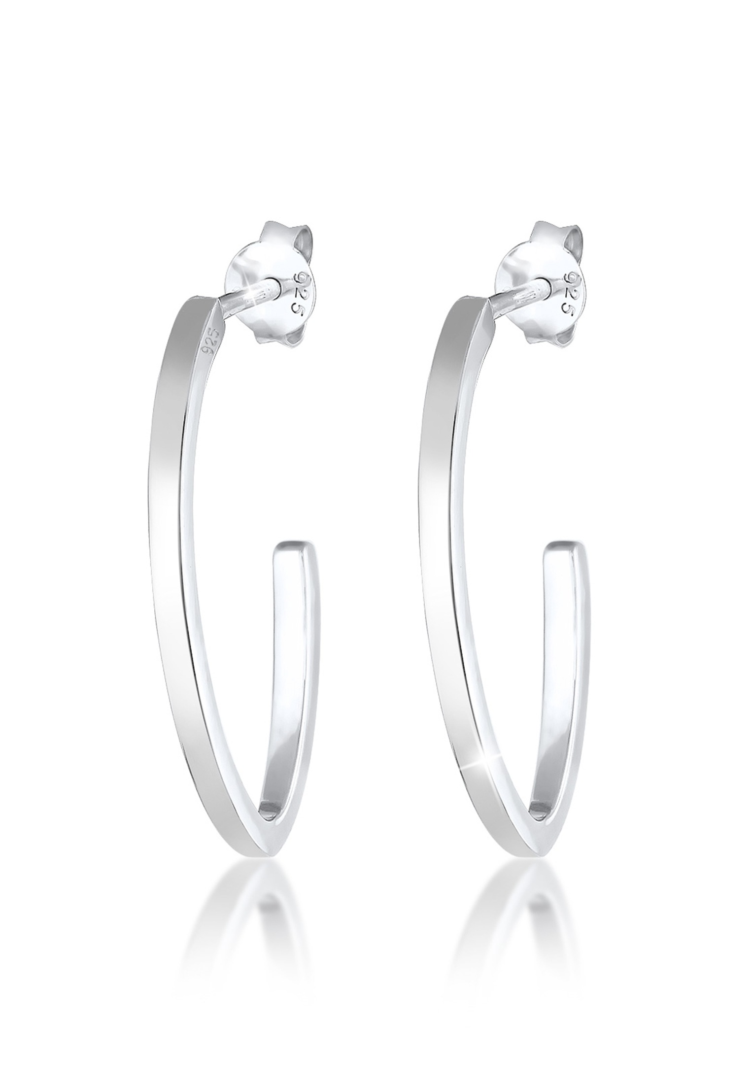 Paar Creolen ELLI "Creolen Ohrstecker oval 925 Sterling Silber", silber, Ohrringe, Damen, OneSize, ohne Stein, Silber 925 (Sterlingsilber)