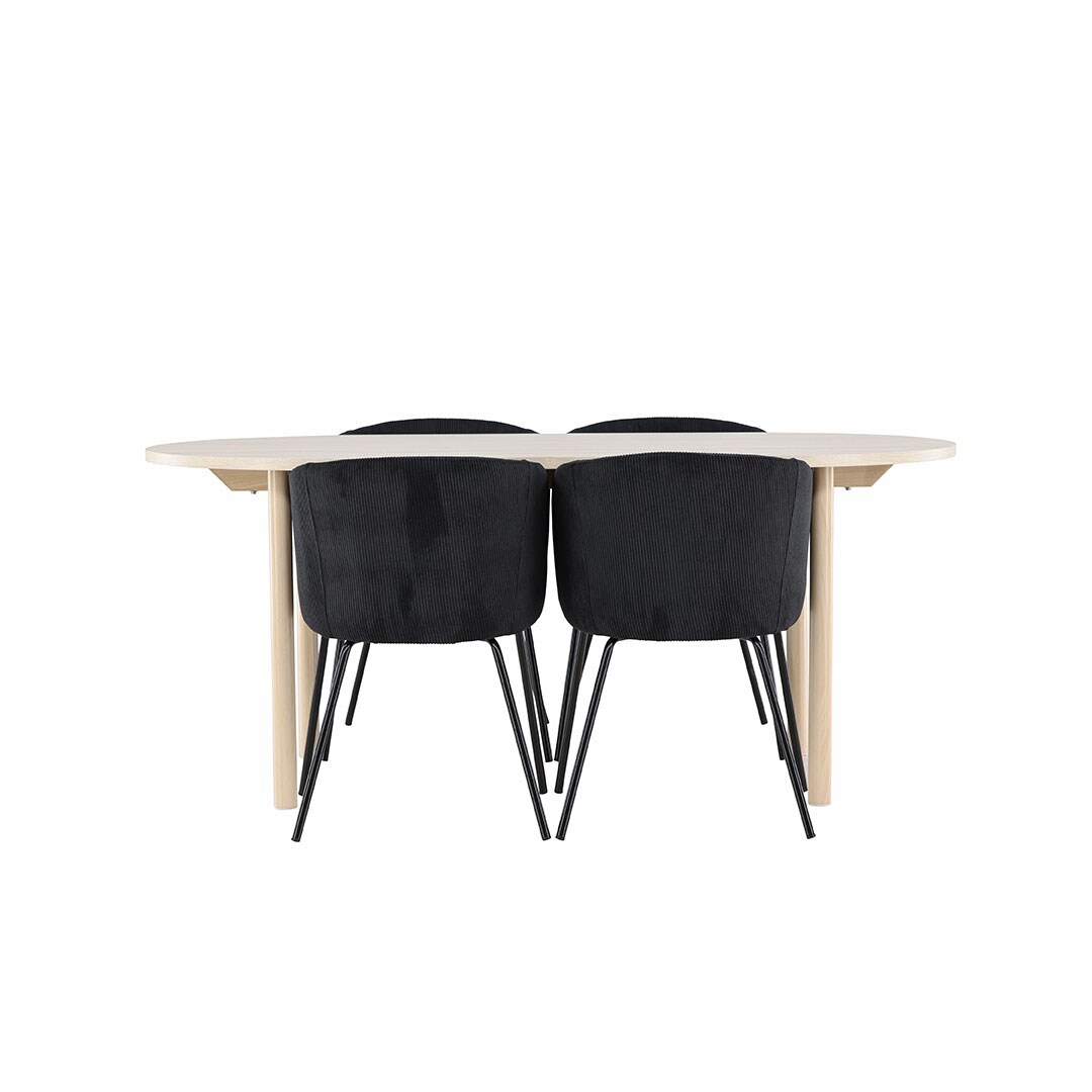Ebuy24 Andy Essgruppe Tisch 90x180cm und 4 Velours Stühle mit Armlehnen whitewash.