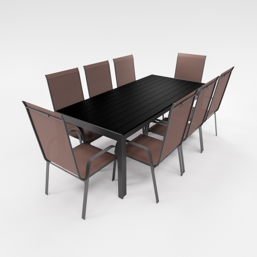 Lex Gartenmöbel Set 9-tlg. Alu Tisch 8x Stapelsessel Essgruppe Gartenset Sitzgruppe Stühle