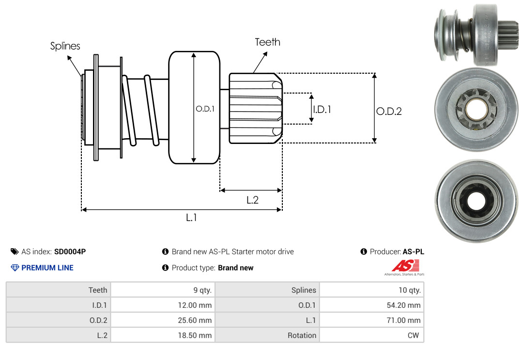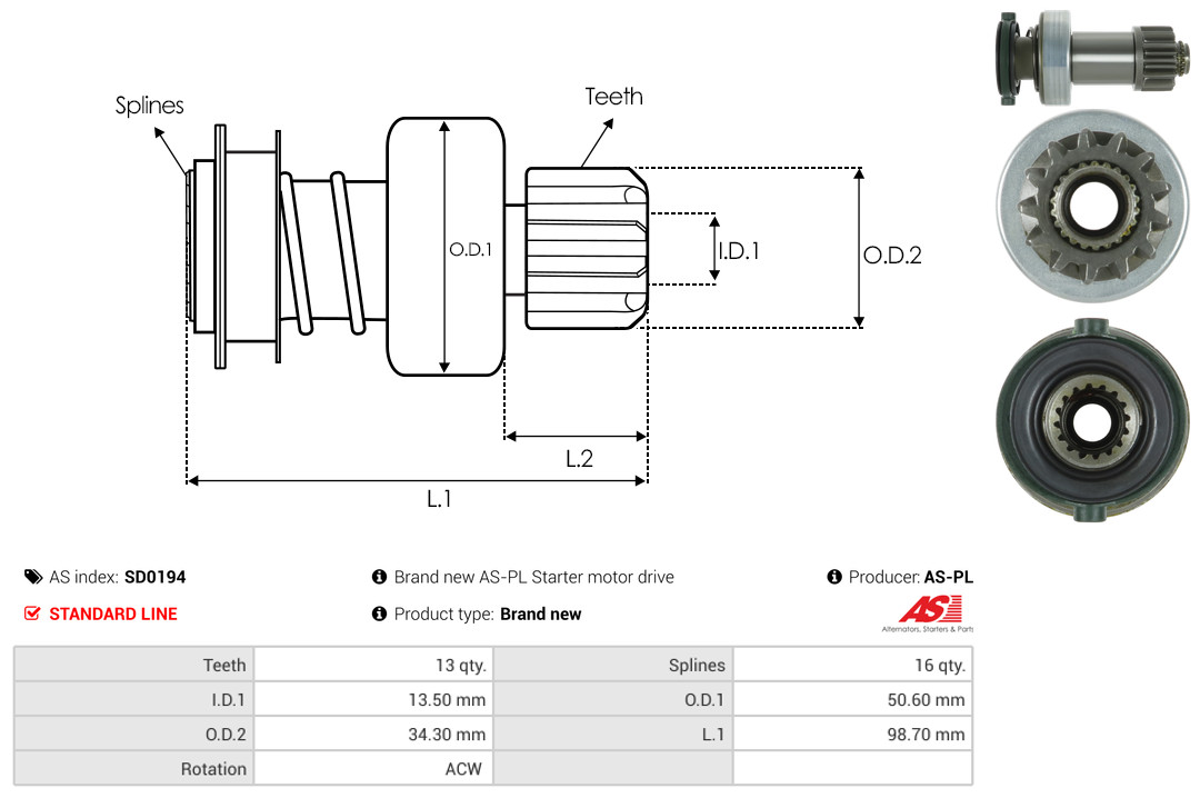AS-PL Freilaufgetriebe, Starter SD0194 Universal für VW 03G911335E 035911335E