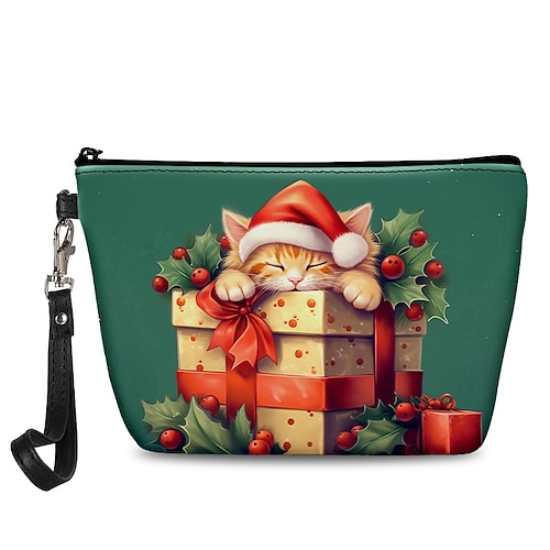 pochette da polso con stampa di gatto natalizio da donna con design a scatola regalo, borsa da donna a tema festivo per occasioni festive