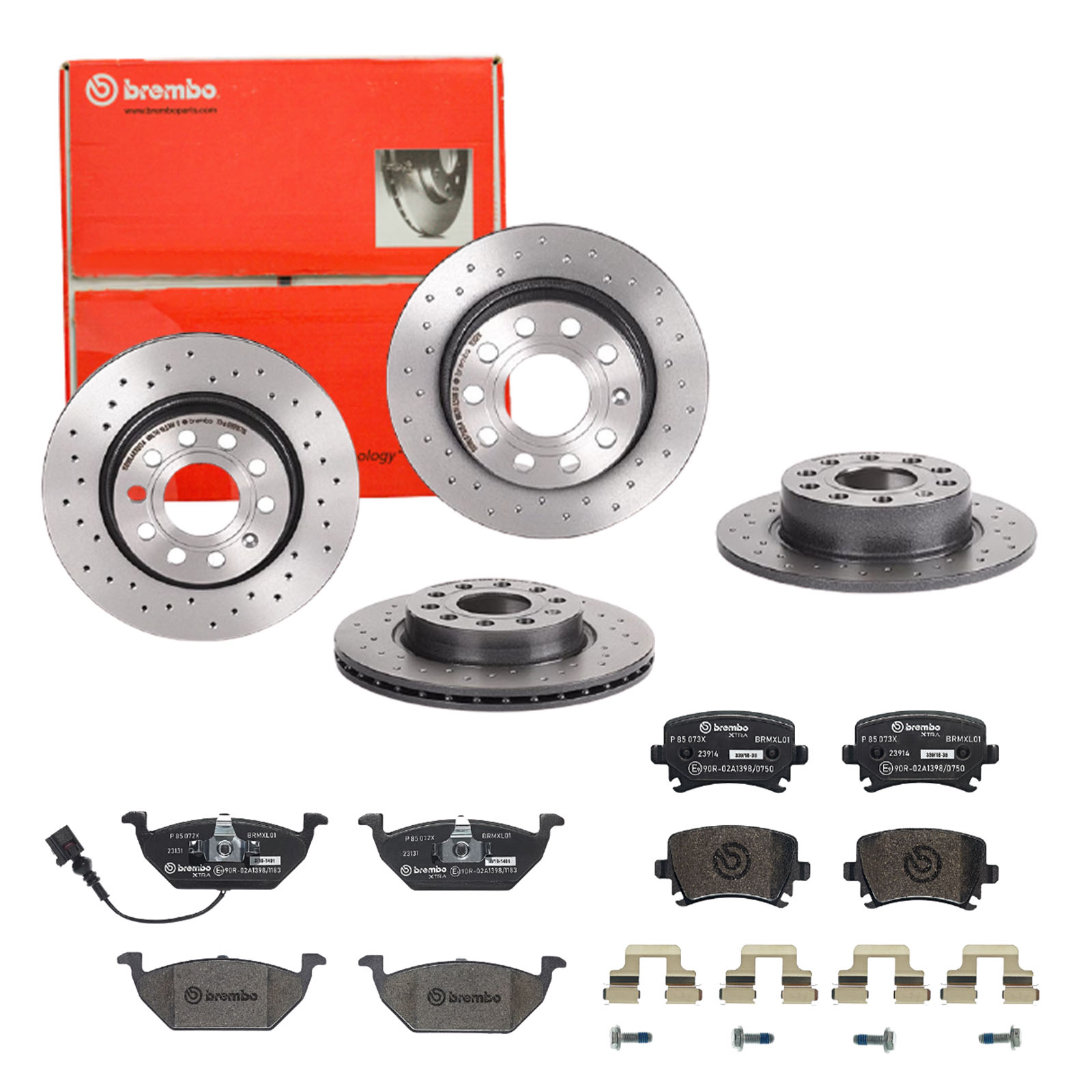 BREMBO Bremsensatz-Vorn und hinten SG00000E61 Bremsensatz, Scheibenbremse vorne rechts links Gelocht 253mm für SKODA VW (SVW) ROEWE (SAIC) SEAT (FAW)