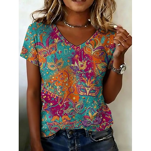 Per donna Maglietta Grafico Geometrico Vintage Classico Casual Manica Corta Girocollo Top Regolari Quotidiano Weekend Abbigliamento mare Stampato Blu Rosso Viola Grigio Estate Primavera