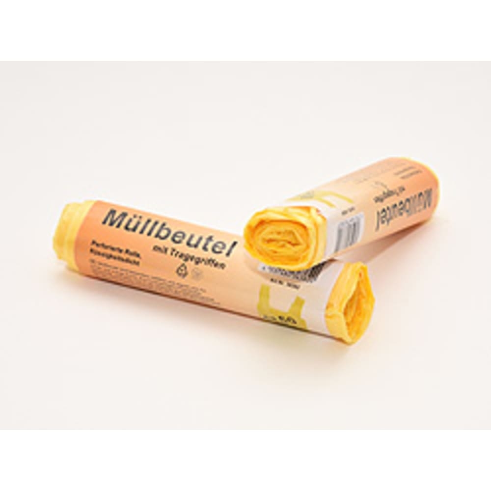 10 Müllbeutel, 60 Liter, gelb mit Trageschlaufe, auf Rolle
