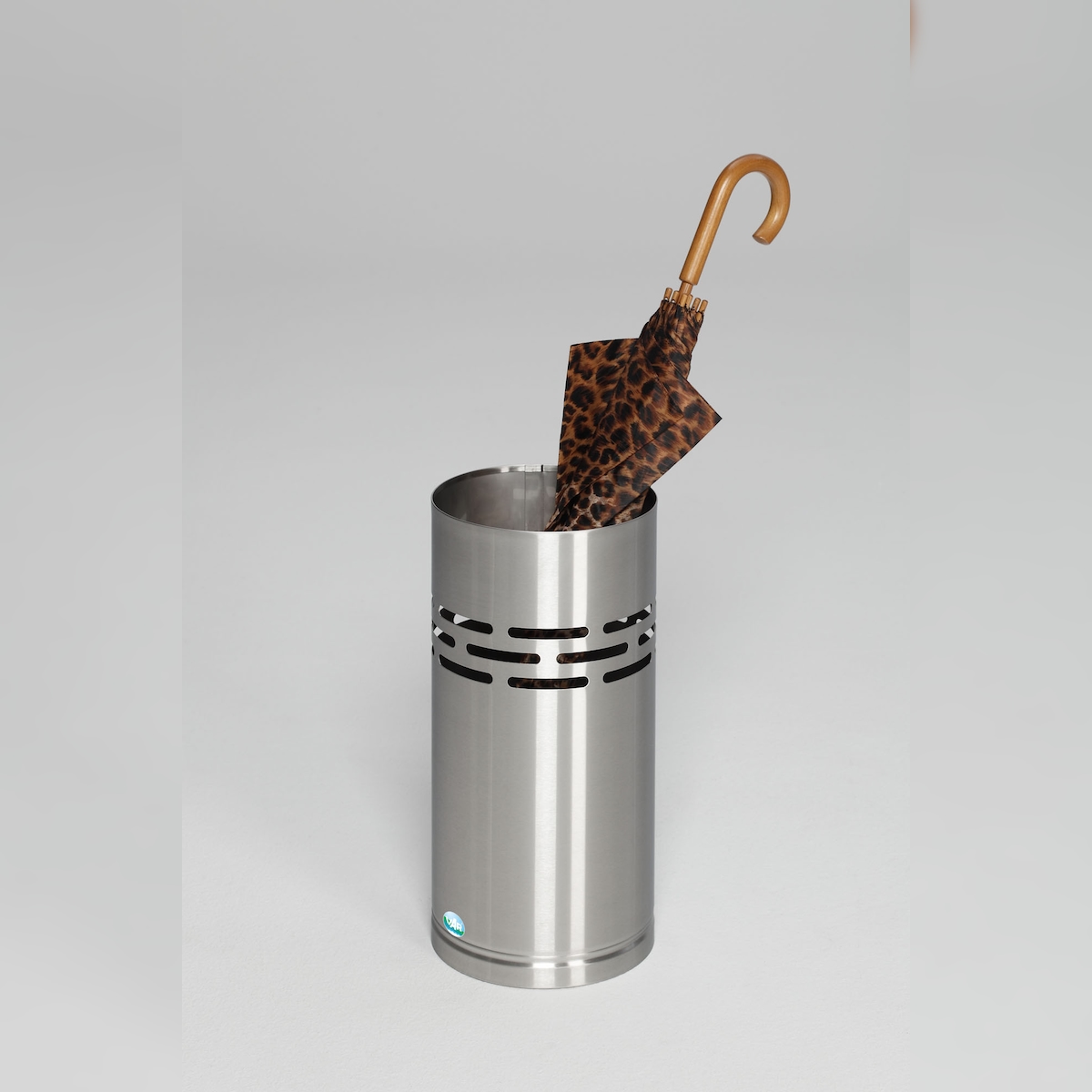 PROREGAL Robuster Schirmständer/Papierkorb mit attraktiver Stanzung | HxBxT 49x23x23 | Edelstahl | Silber | Papiereimer Mülleimer für Papier