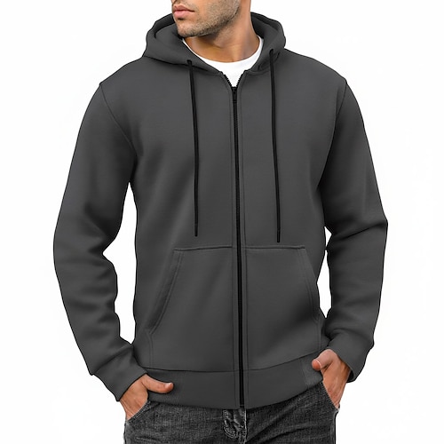 Per uomo Felpa con cappuccio Felpa con cappuccio a zip intera Felpa con cappuccio e zip Felpa con cappuccio in pile Blu Nero Marrone Con Cappuccio Semplice Con zip Tasca Sport Outdoor Casuale