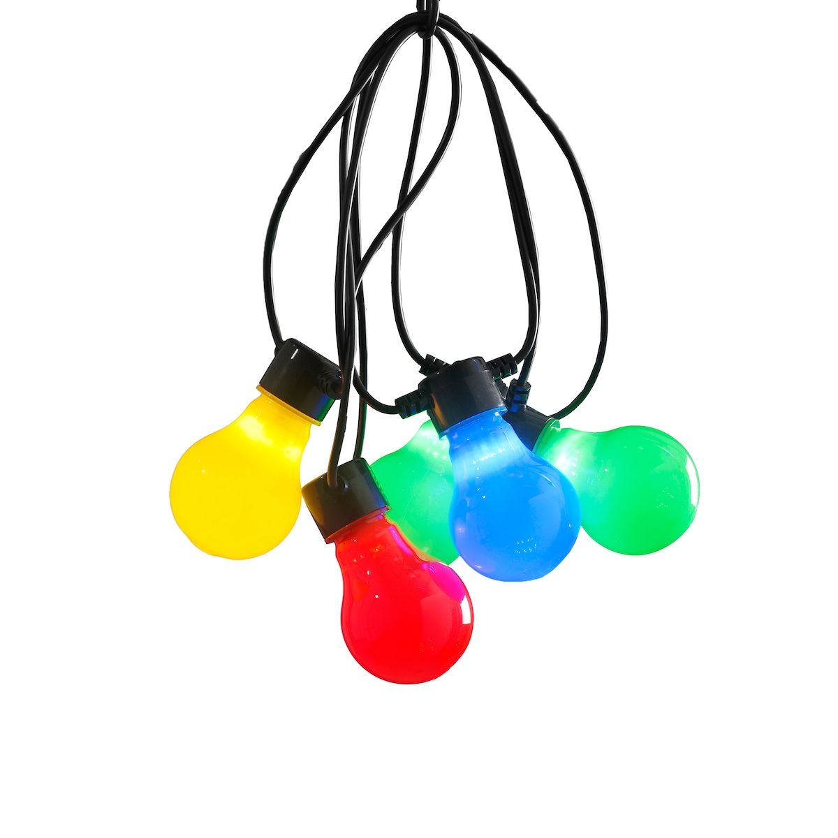 Konstsmide LED Biergartenkette, bunt, 20 milchig bunte Birnen / 160 warm weiße Dioden, 24V Außentrafo, schwarzes Kabel