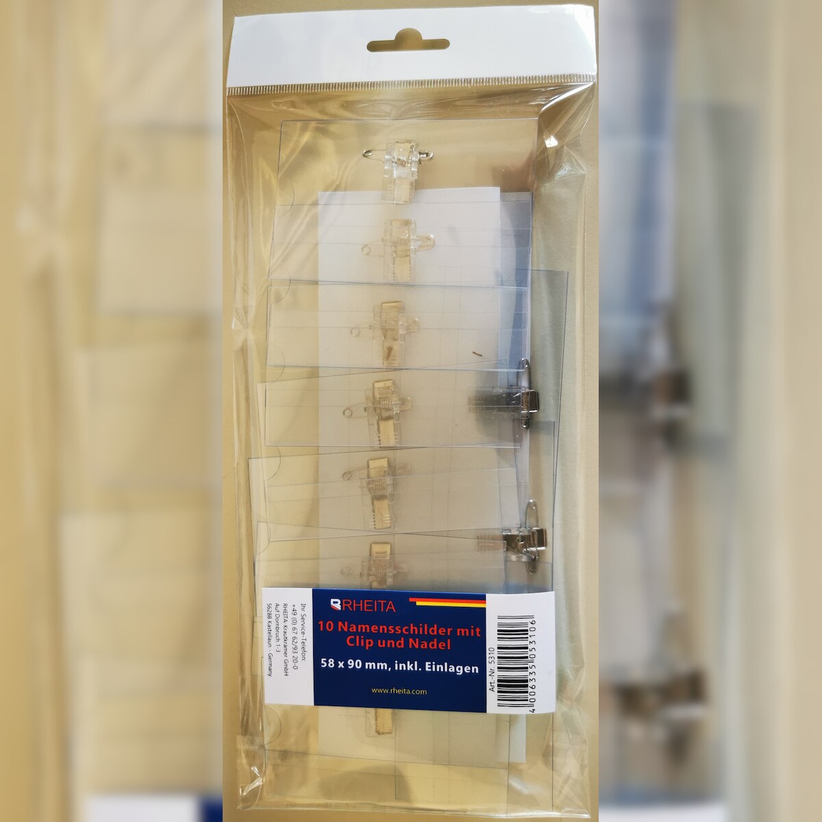 Rheita 10 Namensschilder mit Clip und Nadel
