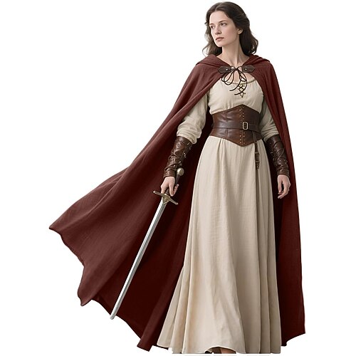 Retrò Vintage Medievale Rinascimento Mantello Mantello con Cappuccio Scialli Vampiro Nobile Tiro con l'arco Tinta unica Costume Per uomo Per donna Celtico Vichingo Fantasia Halloween LARP Adulti