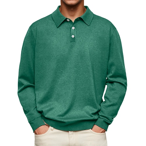 Per uomo Polo Casuale Sportivo Bavero Manica Lunga Essenziale Moderno Semplice Testurizzato Bottoni Primavera Autunno Nero Blu marino Marrone Ciano Grigio Azzurro Polo