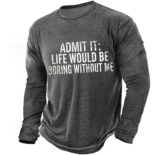 Ammettilo, la vita sarebbe noiosa senza di me. Maglietta da uomo a maniche lunghe, stile vintage, retrò, con slogan grafico, grigio antracite, stampa consumata, casual, girocollo, abbigliamento,