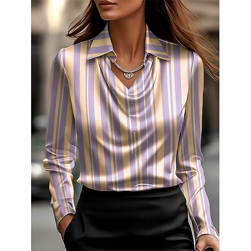 Per donna Camicia A righe Elegante Casual Manica Lunga Scollo a Cascata Top Regolari Quotidiano Lavoro Ferie Stampato Drappeggiato Giallo Viola Verde Primavera Autunno