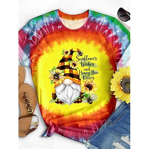 Per donna maglietta Colorato a macchie Alfabetico Informale Manica corta Rotonda Top regolari Giornaliero Stampa Rosa Rosso Blu Viola Arcobaleno Estate