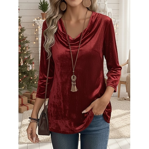 Per donna Camicia Blusa Streetwear Casual Manica 3/4 Colletto a Camicia Top Regolari Ferie Weekend Pieghettato Rosso