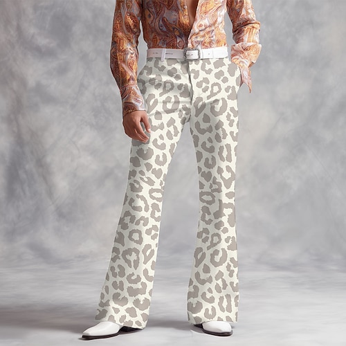 Per uomo Leopardato Pantaloni da discoteca Pantaloni a zampa d'elefante anni '60 e '70 Misura del girovita medio Vintage Retrò All'aperto Vacanza Feste Tasche Laterali Pantaloni a gamba svasata