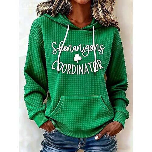 Felpa con cappuccio da donna per il giorno di San Patrizio con grafica trifoglio calda casual stampa maniche lunghe cappuccio top regolari casual strada stampa bianca primavera autunno inverno