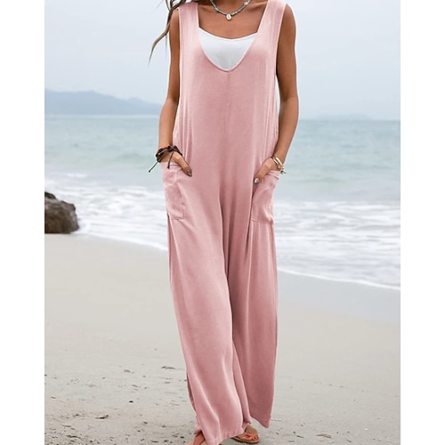 Per donna Normale Tuta Attivo Tinta unica Senza Maniche Gamba larga Scollo a V Tasca Quotidiano Vacanza Vestibilità comoda Nero Rosa Verde Estate
