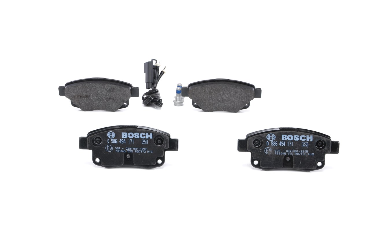 BOSCH Bremsbelagsatz, Scheibenbremse 0 986 494 171 hinten rechts links mit Zubehör für FORD 1371454 1819638 1560026