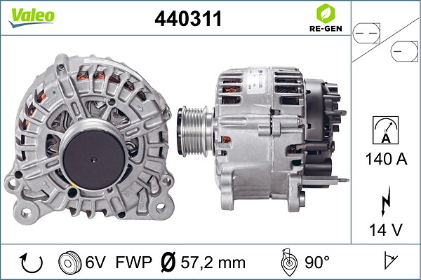 VALEO Generator REMANUFACTURED PREMIUM 440311 14V 140A für SKODA VW SEAT 03P903023H 3P903023B 03P903023HX