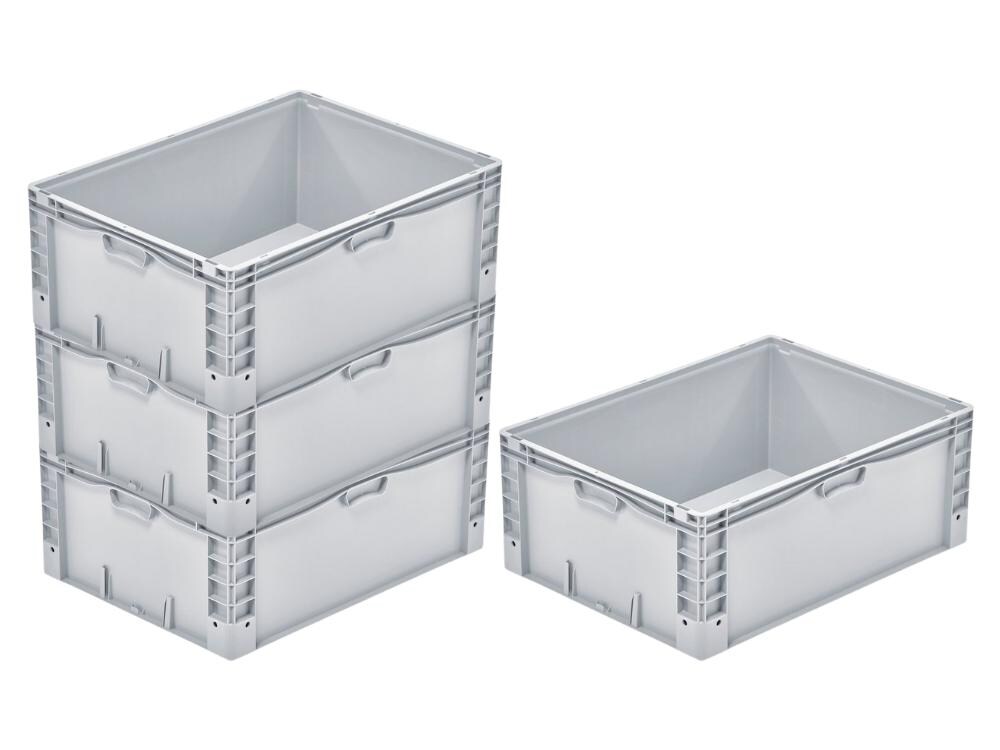 PROREGAL 4x Euro-Norm Großbehälter | HxBxT 32x60x80cm | 133 Liter | Glatter Boden | Grau | Eurobehälter, Transportbox, Transportbehälter