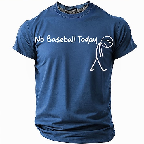 'Niente Baseball Oggi' T-Shirt Grafica da Uomo Figurina a Bastone Triste Maglietta Corto Maniche Rossa per Fan di Baseball