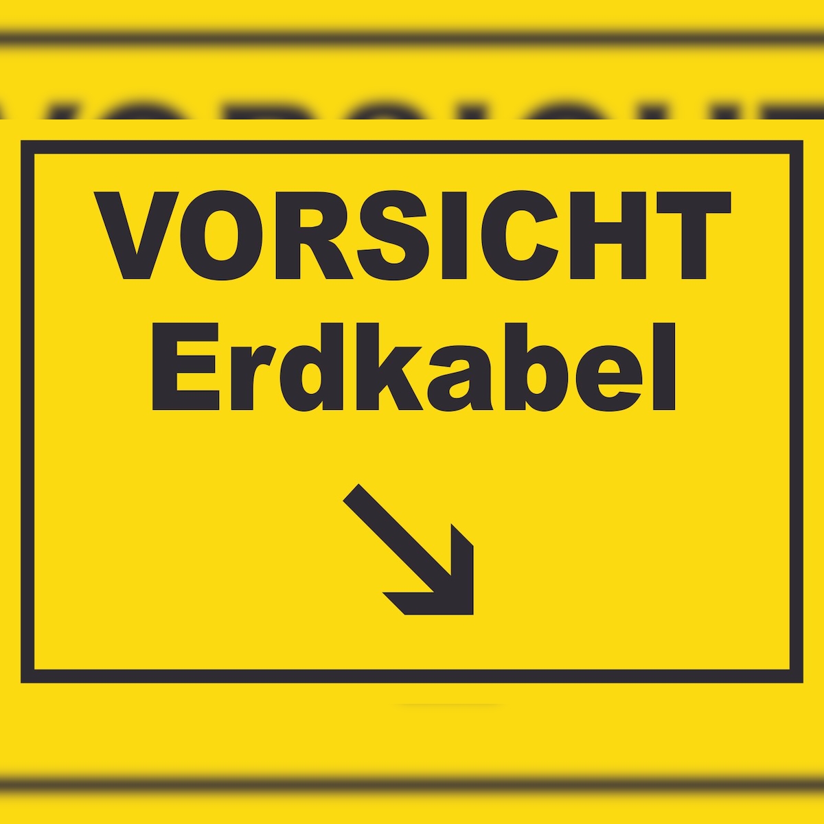 HB-Druck Vorsicht Erdkabel mit Richtungspfeil rechts unten Schild A1 (594x841mm)